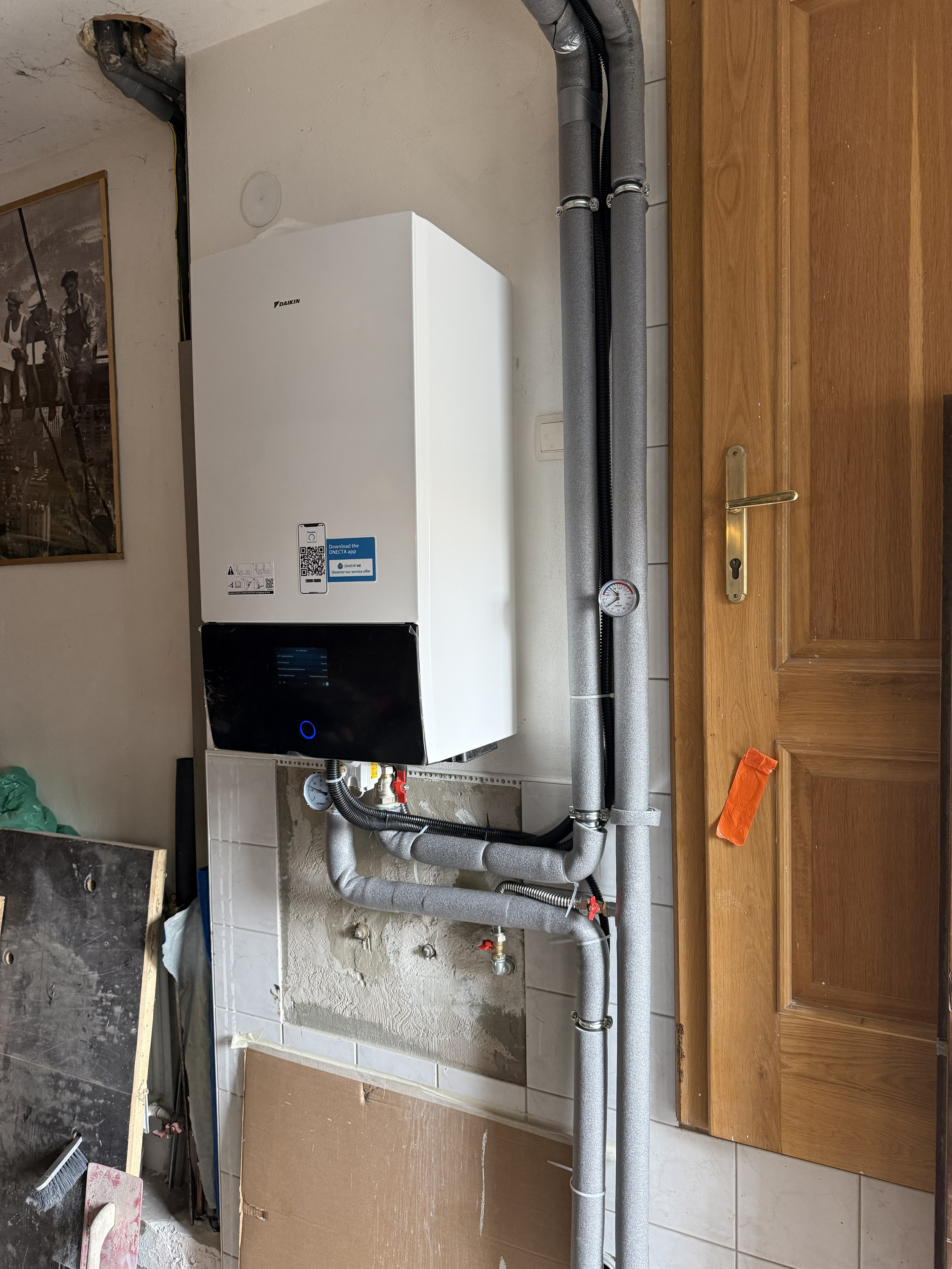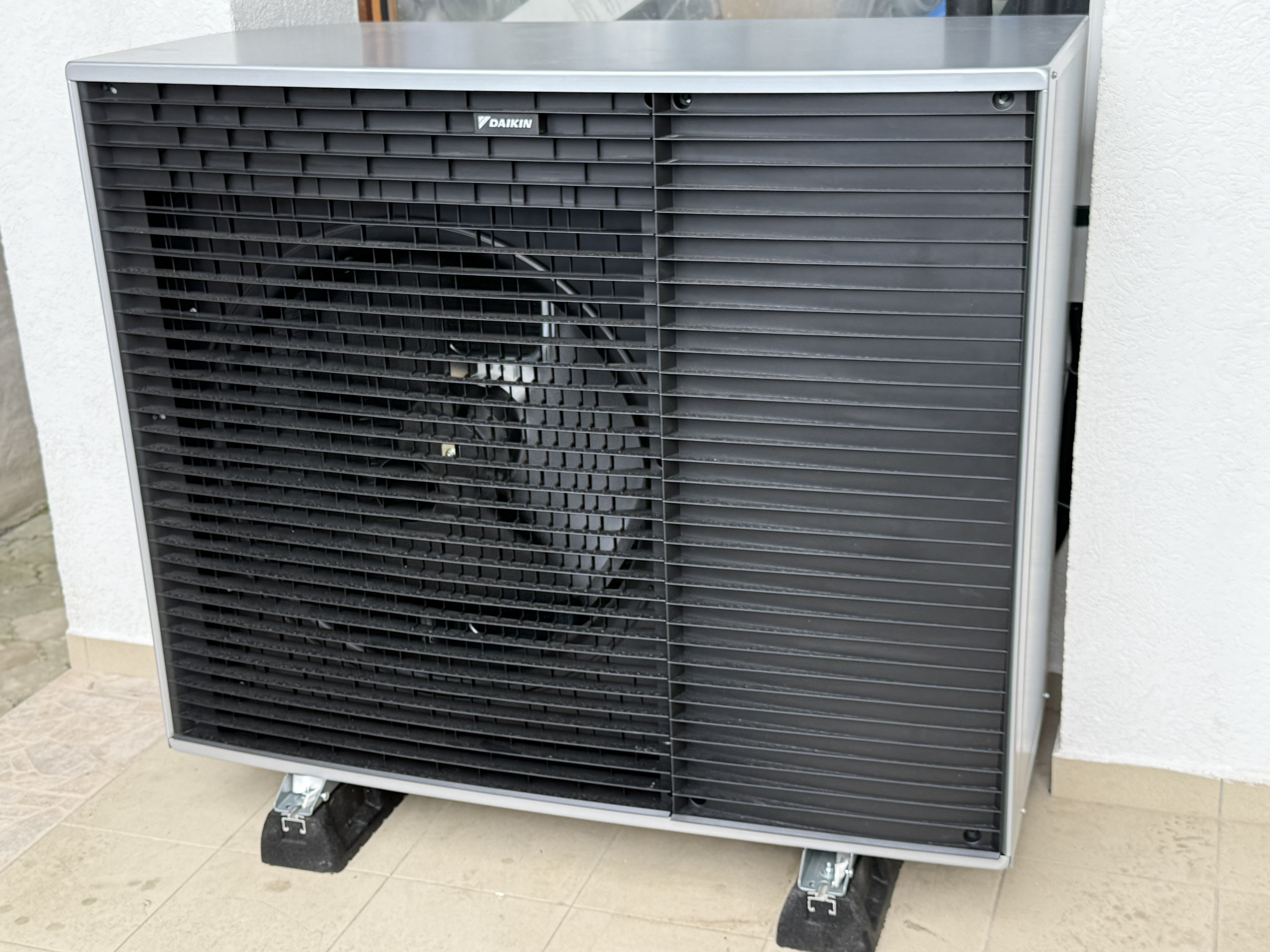 Pri tejto realizácii sme osadili vonkajšiu jednotku Daikin Altherma 4 na pevné antivibračné uloženie a pripravili ju na dlhodobú stabilnú prevádzku. V technickej časti domu sme nainštalovali vnútornú jednotku, prepojili rozvody a pripravili systém na uvedenie do prevádzky.