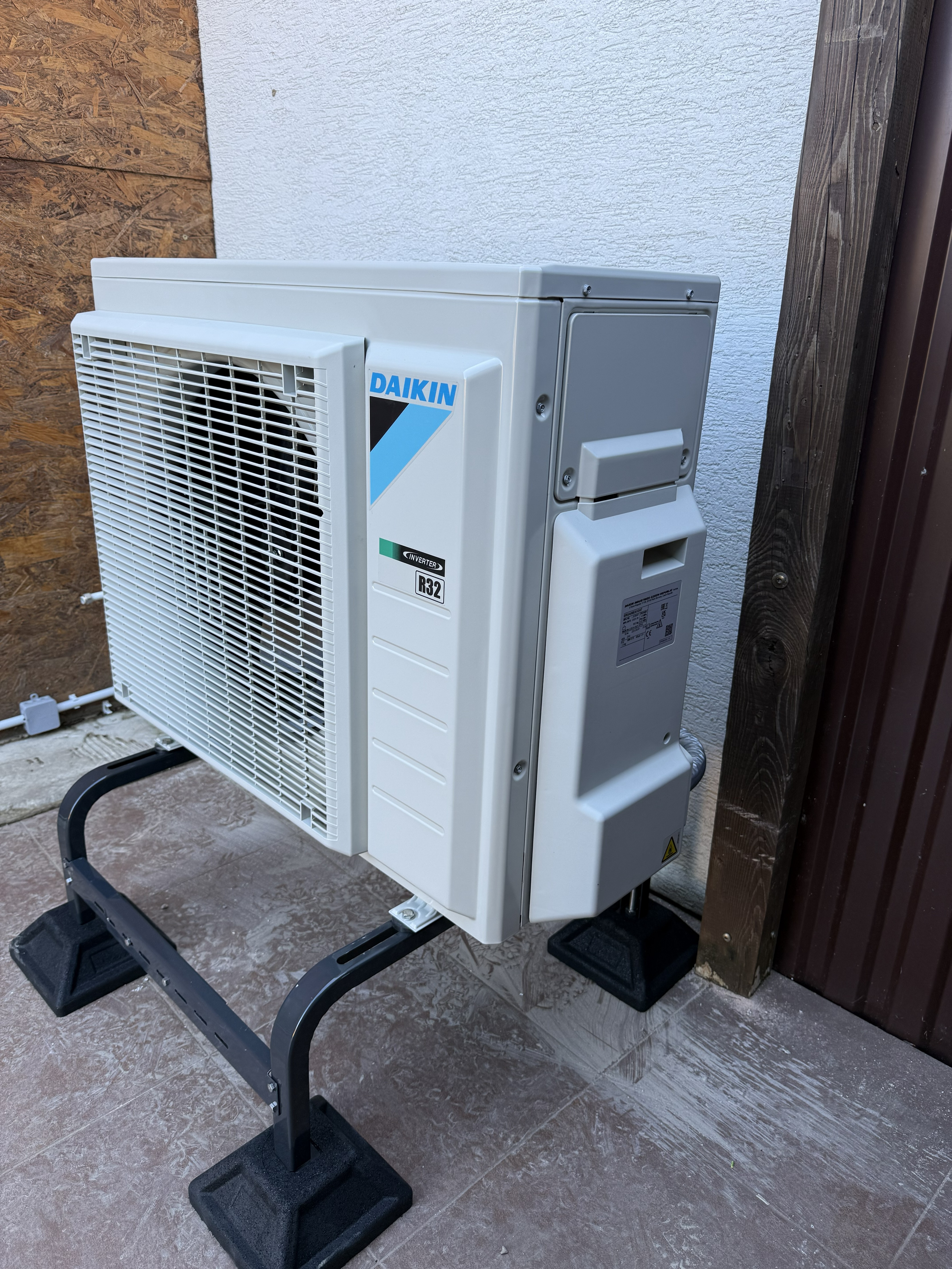 Vonkajšia jednotka Daikin Altherma 3 – 8 kW bola osadená na pevný podstavec s antivibračnými prvkami. Takéto riešenie pomáha zvýšiť stabilitu zariadenia a zároveň obmedziť prenos vibrácií do okolia.